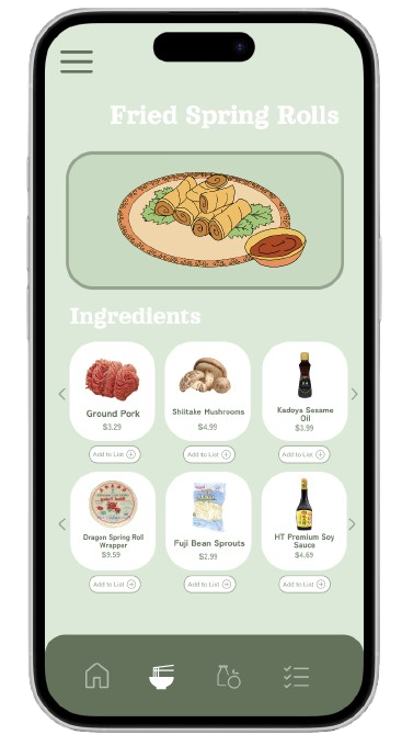 A mobile application prototype designed to enhance the grocery shopping experience at Better World Market. The app aims to streamline shopping efficiency while promoting cultural exploration by integrating curated Asian recipes based on in-store ingredients.